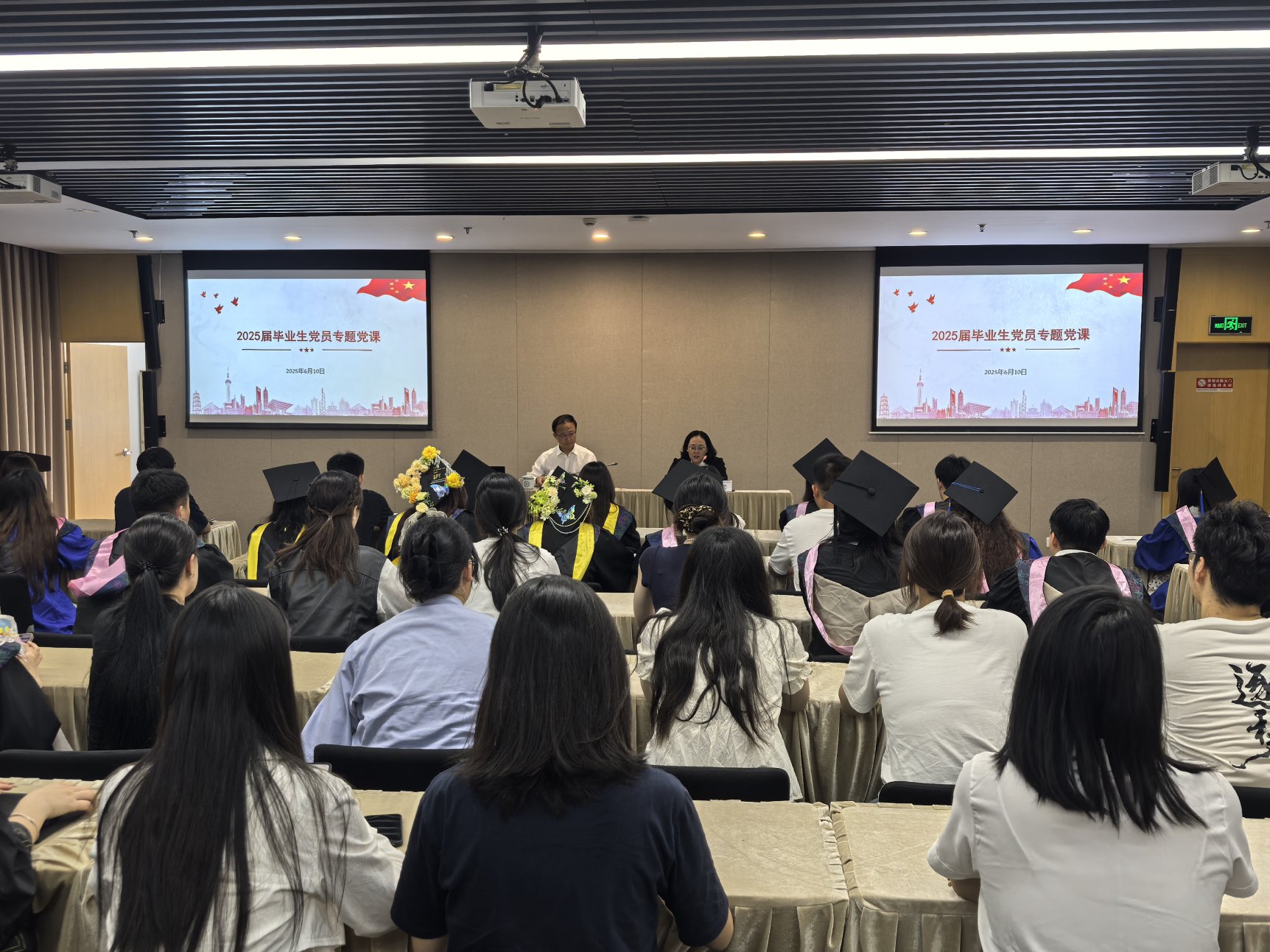 为扎实推进深入贯彻中央八项规定精神学习教育,进一步筑牢毕业生党员理想信念根基,提升党性修养,6月10日下午,学校在综合楼422会议室举行2025届毕业生党员专题党课。校党委书记沈大明主讲,校党委副书记、副校长劳晓芸主持,2025届毕业生党员代表以及机关第二党支部全体党员参加。